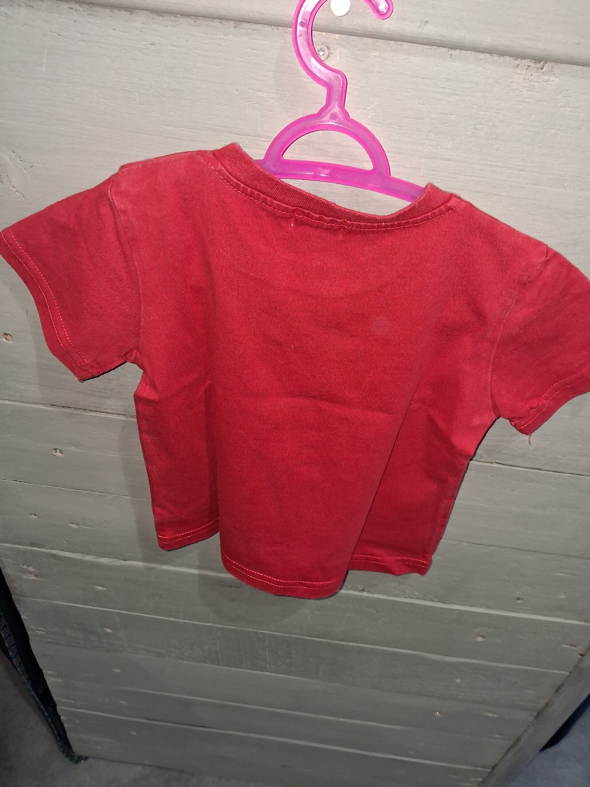 T-shirt manches courtes rouge imprimé devant.