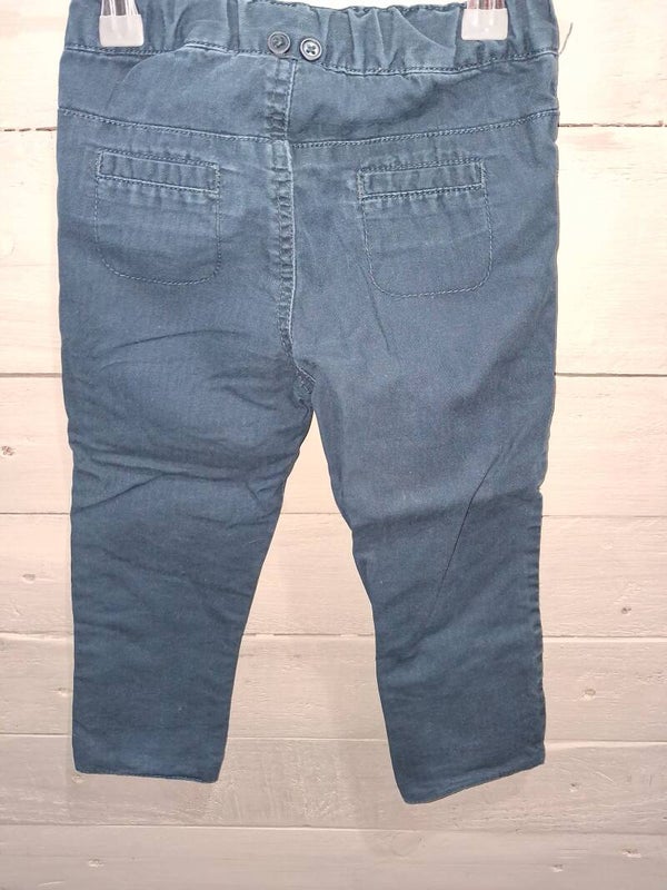Pantalon toile bleu marine 1 bouton et boutons pour bretelles.