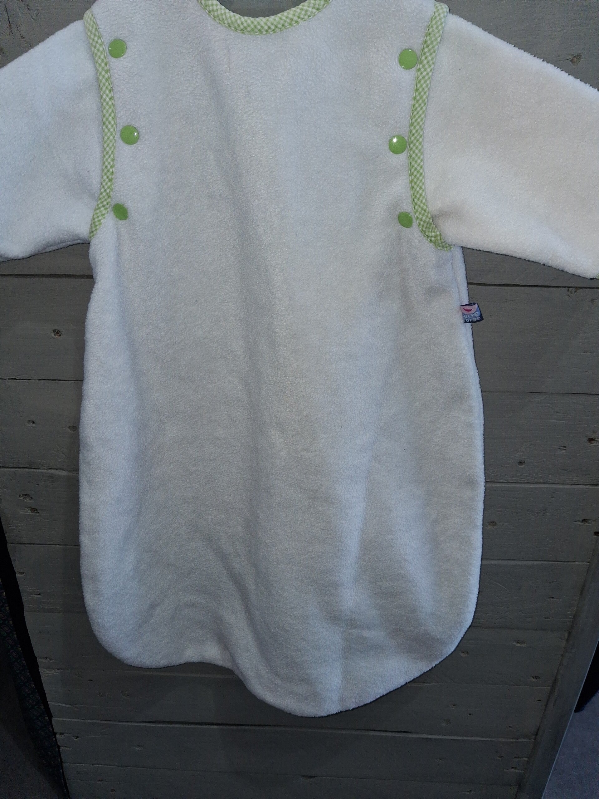 Gigoteuse blanche avec manches qui s’enlèvent avec boutons pressions.