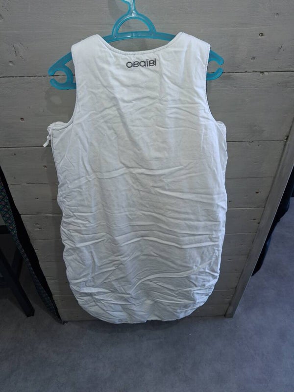 Gigoteuse blanche et grise sans manches boutons pressions épaules.