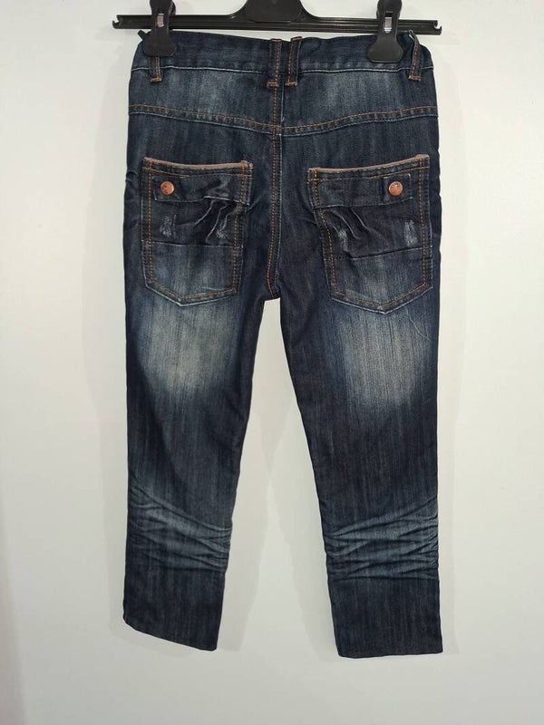 Jean bleu effet usé taille réglable bouton fermeture eclair