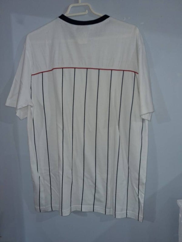 T-shirt blanc rayures bleues manches courtes