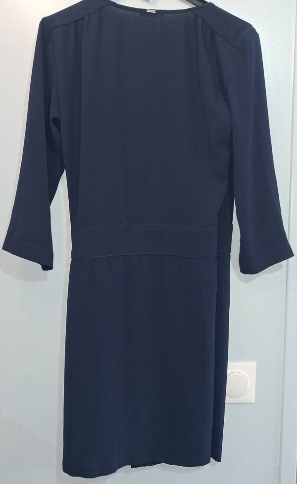 Robe cache cœur bleue marine manches 3/4 à nouer dur le côté
