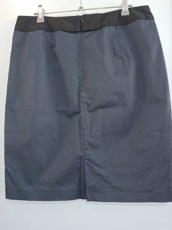 Jupe droite bleue ceinture noire fermeture eclair au dos poches devant