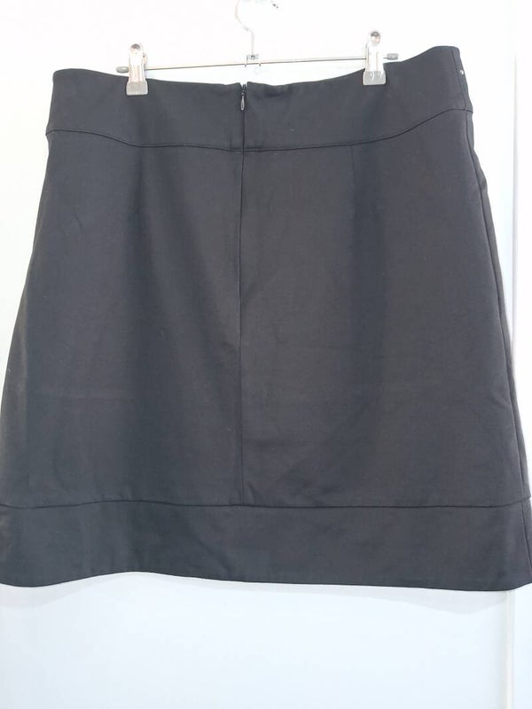 Jupe midi noire avec bandes blanche et rouge devant fermeture eclair au dos