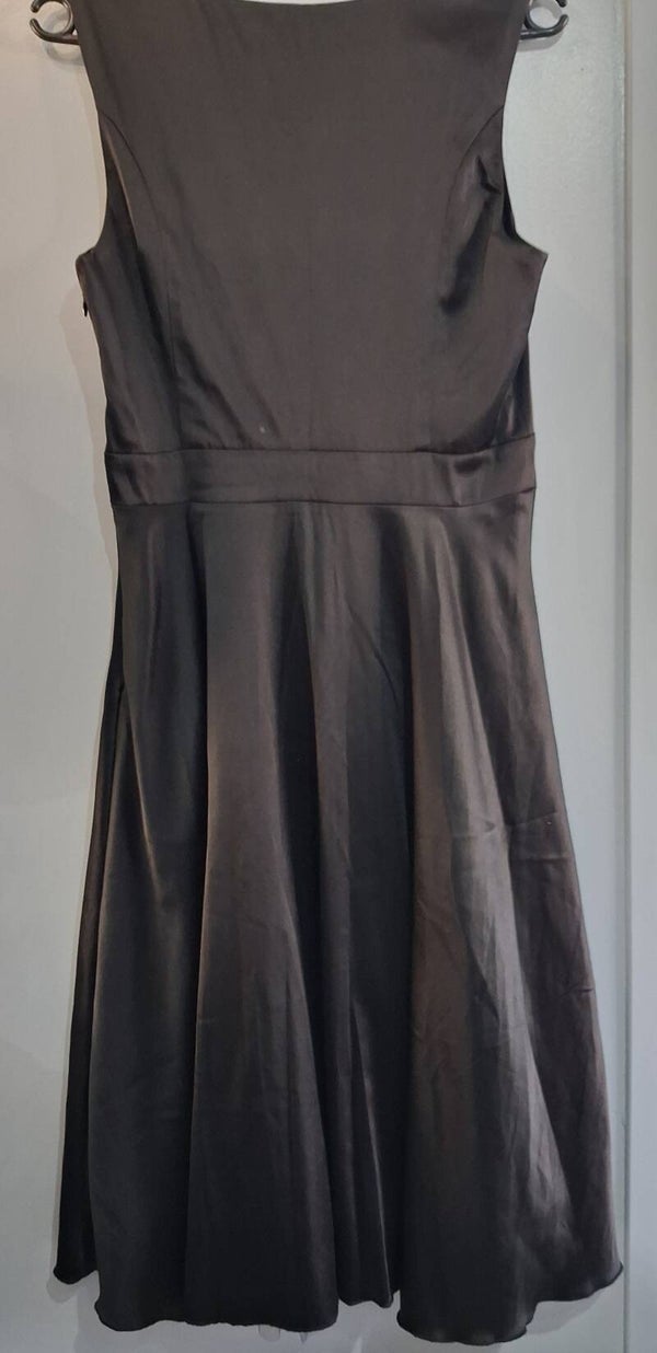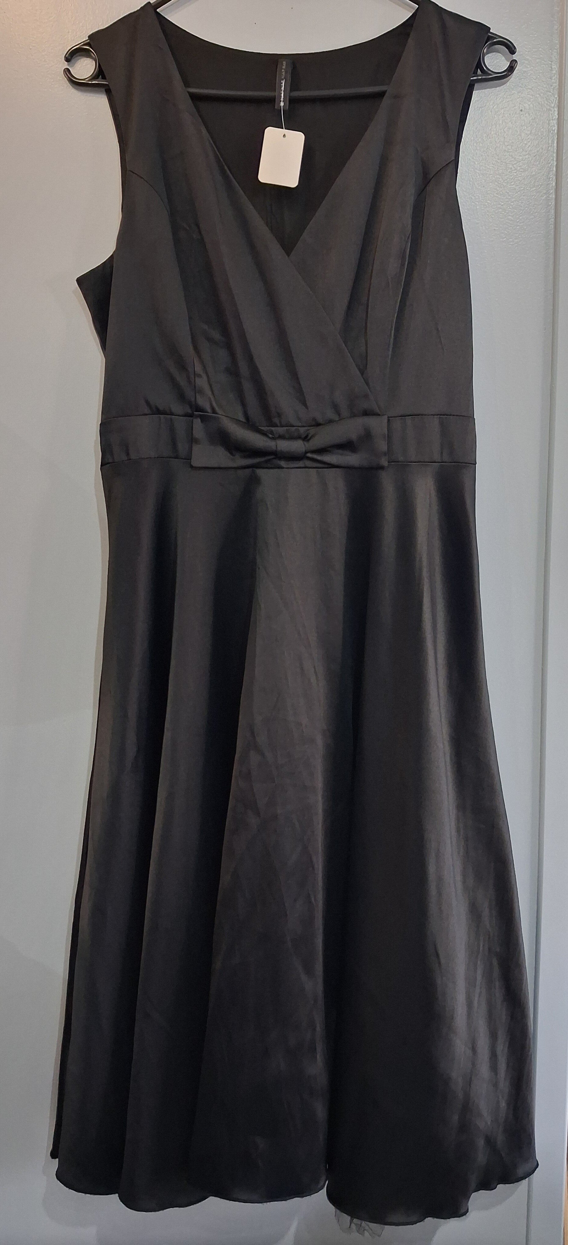 Robe bretelles noire satin fermeture sur le côté nœud devant haut croisé jupon en tulle noir