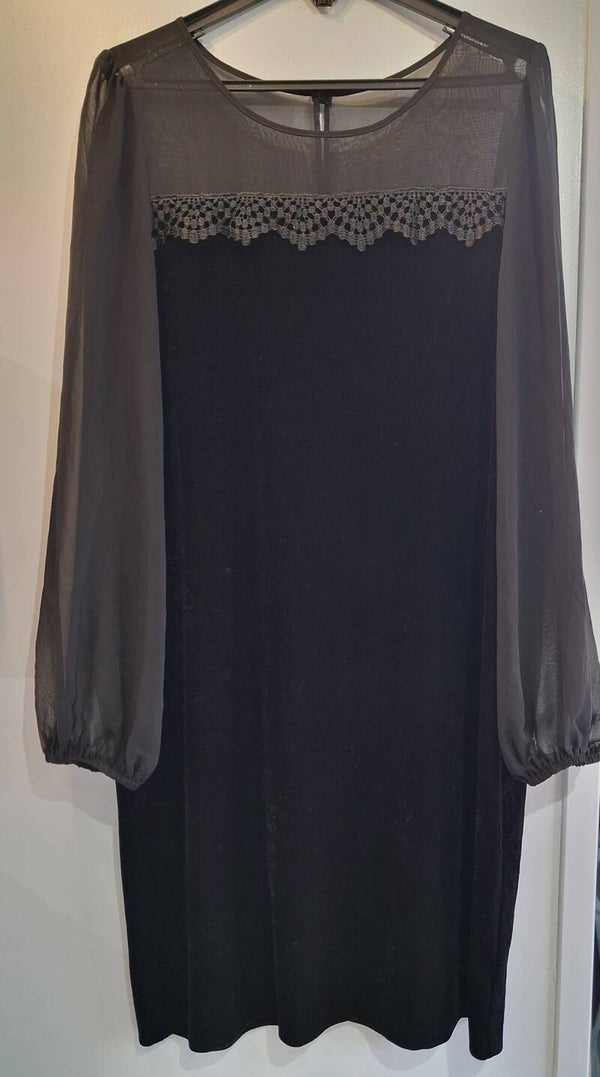 Robe manches longues en velours dentelle et tissu transparent