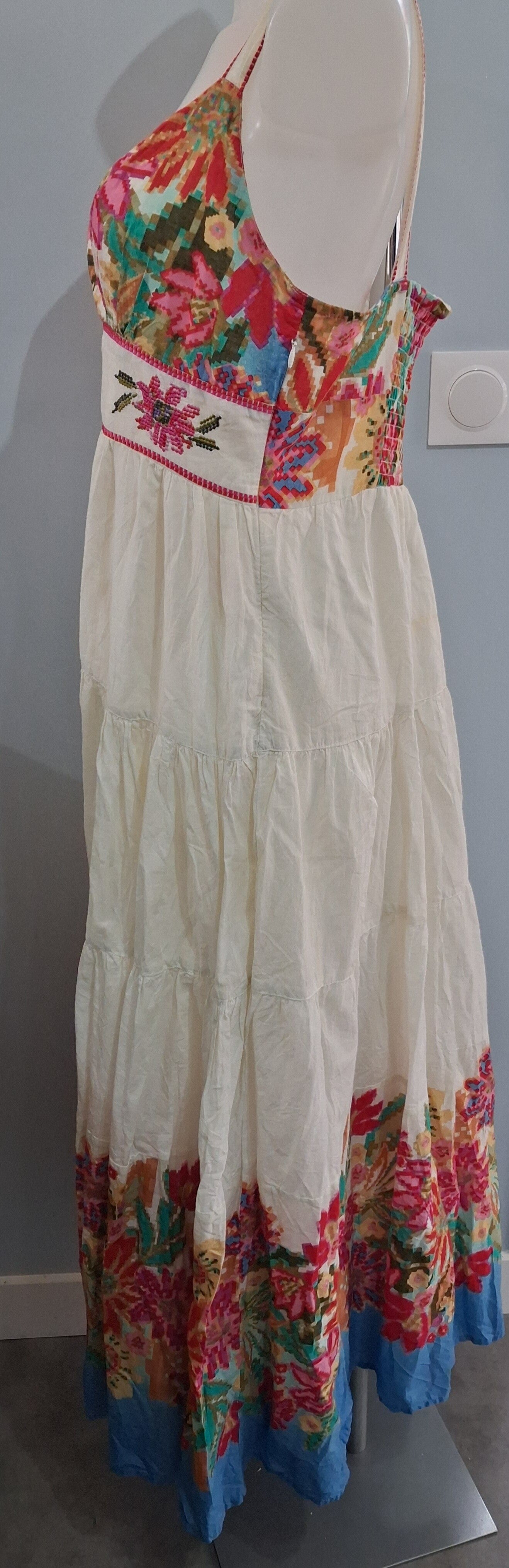 Robe longue écru imprimé fleurs bretelles élastique au dos