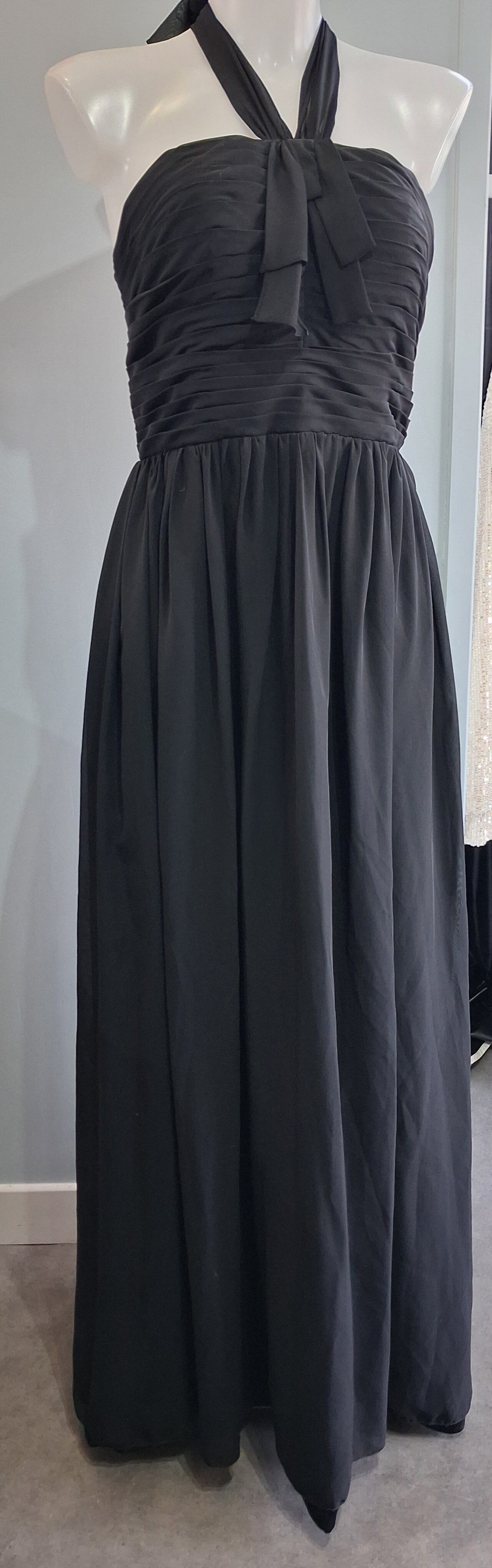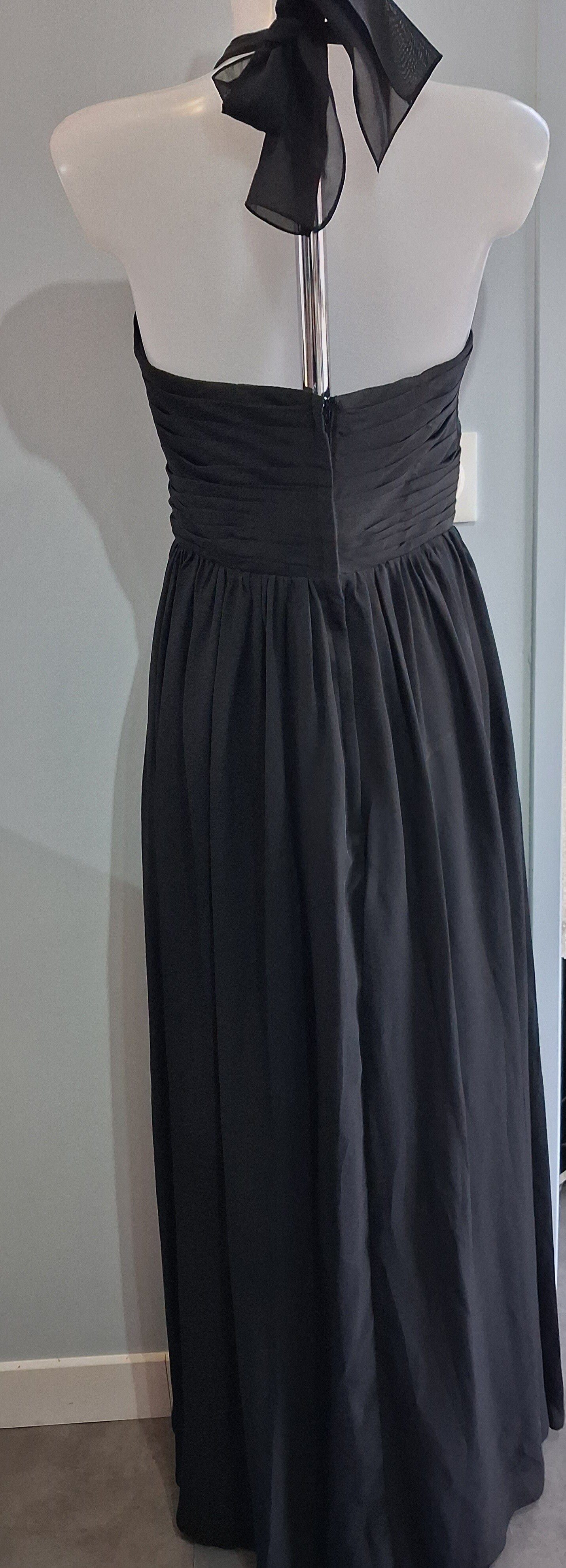 Robe longue de soirée noire drapé à nouer au cou