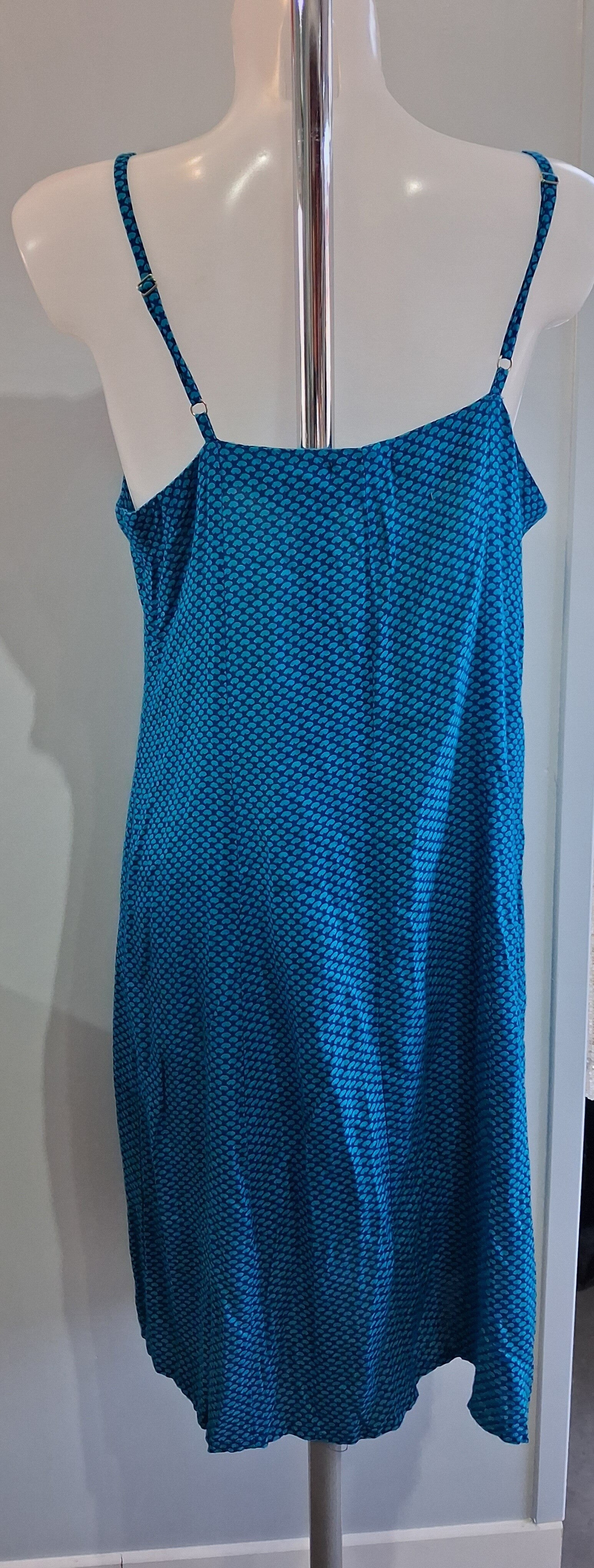 Robe bleue à motifs fines bretelles boutonnée sur la longueur devant