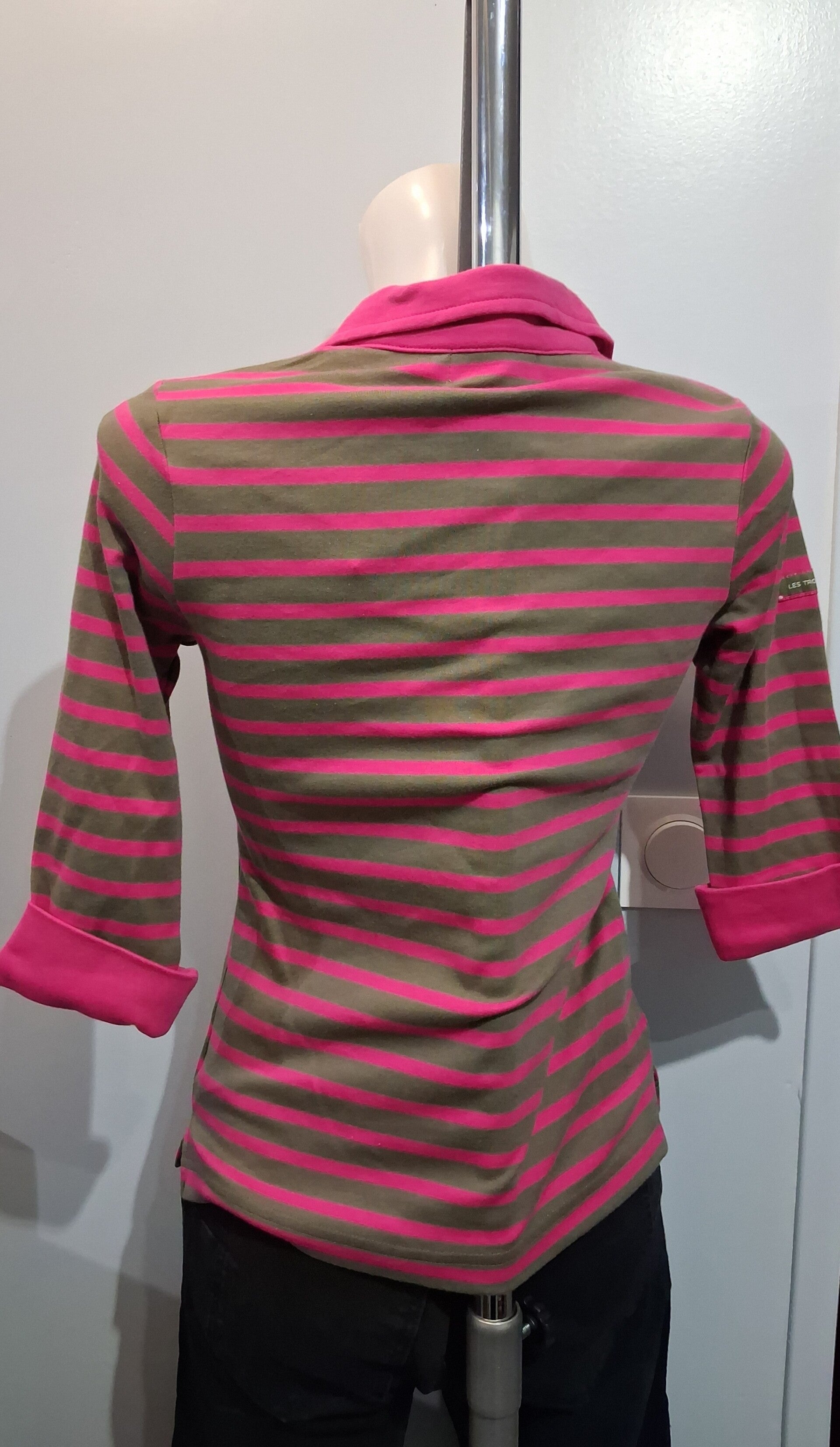 T-shirt manches 3/4 kaki et rose petit col encolure en V