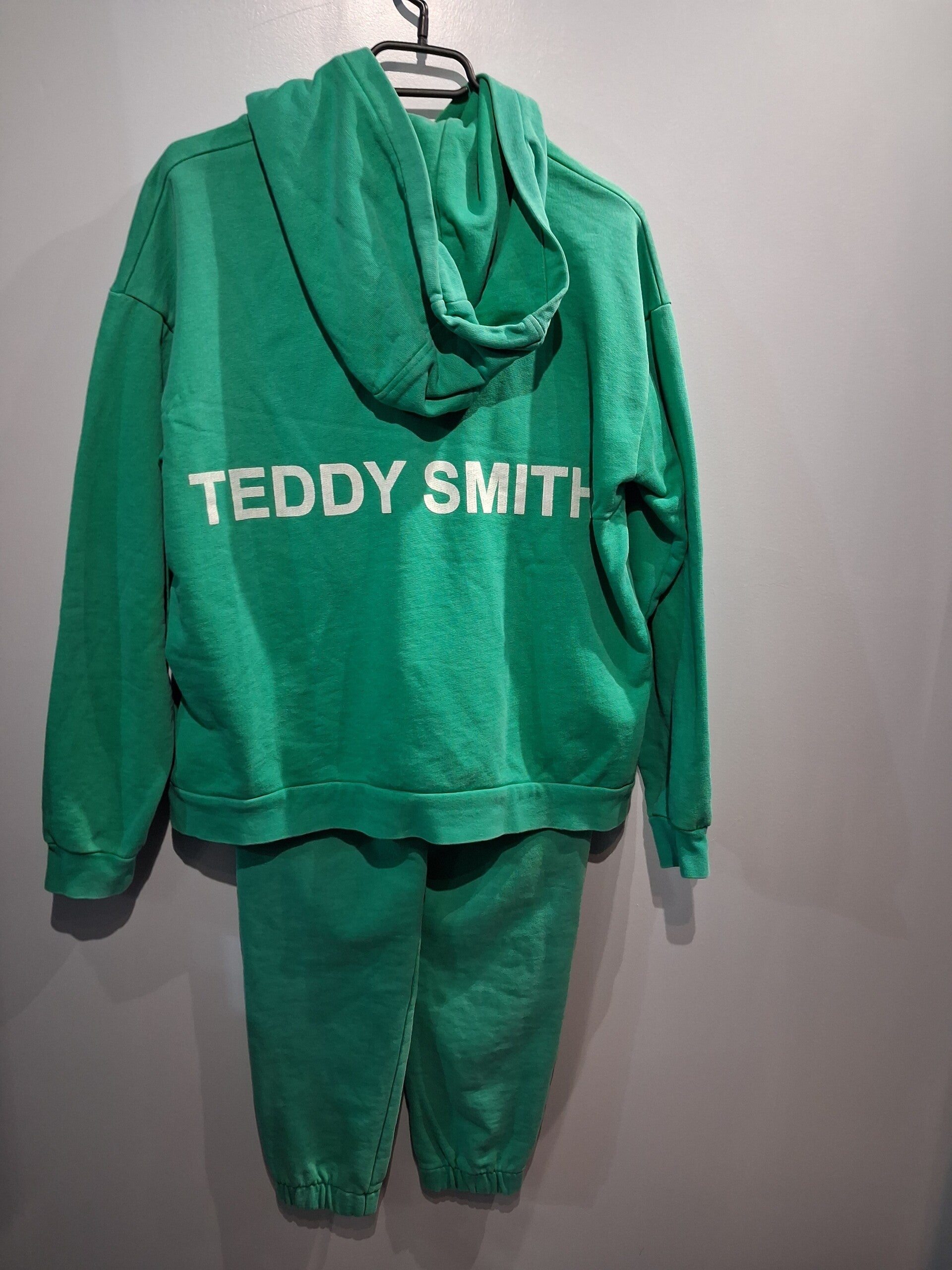 Jogging vert composé d’un sweat à capuche et d’un bas taille élastique avec un lien