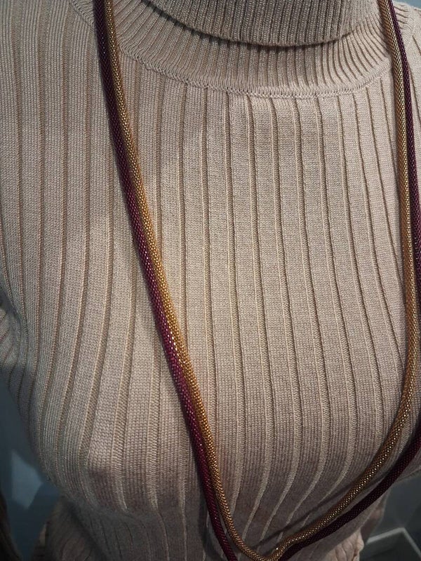 Collier sautoir double un doré et un bordeaux