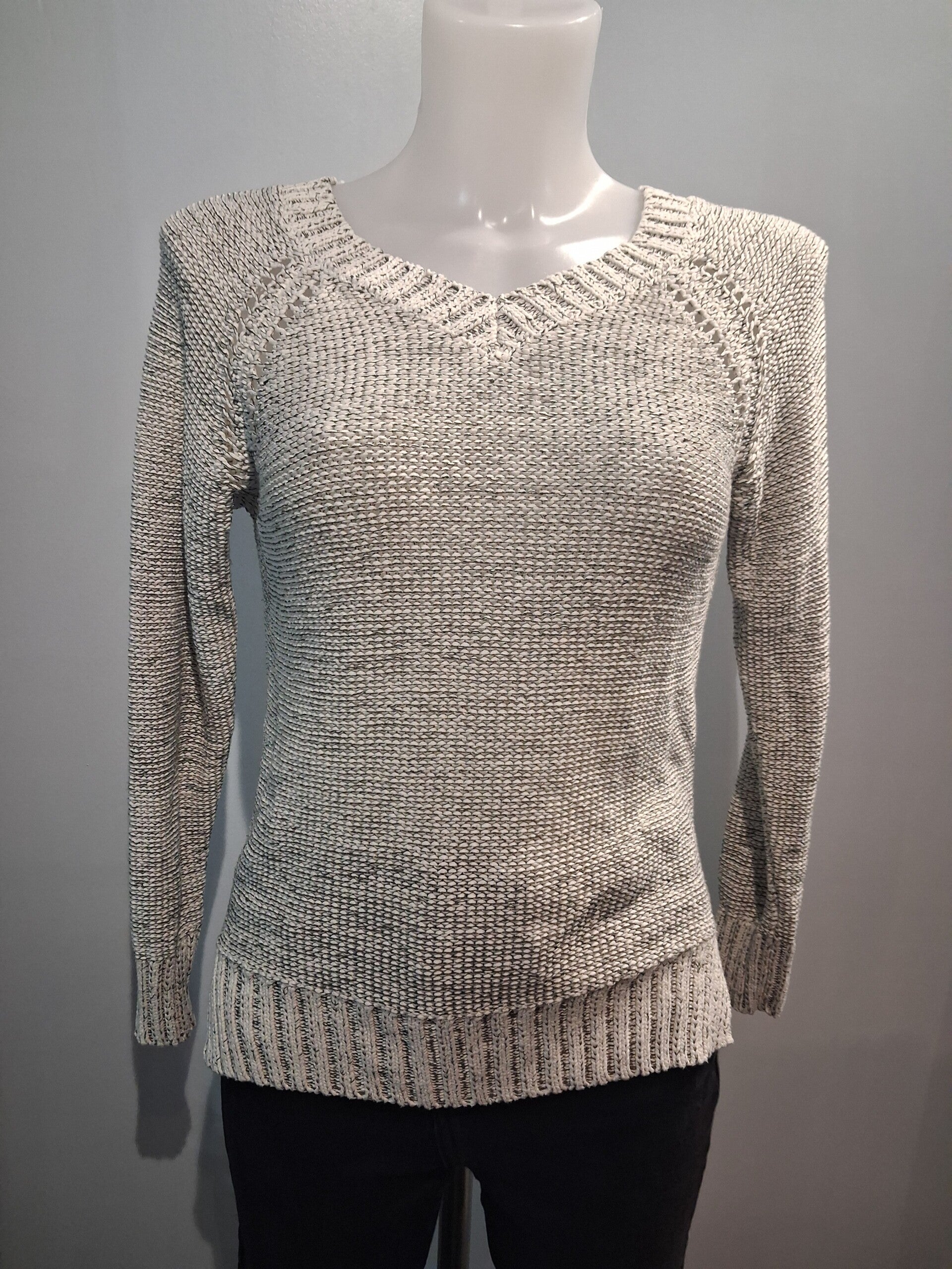 Pull gris et blanc chiné manches longues