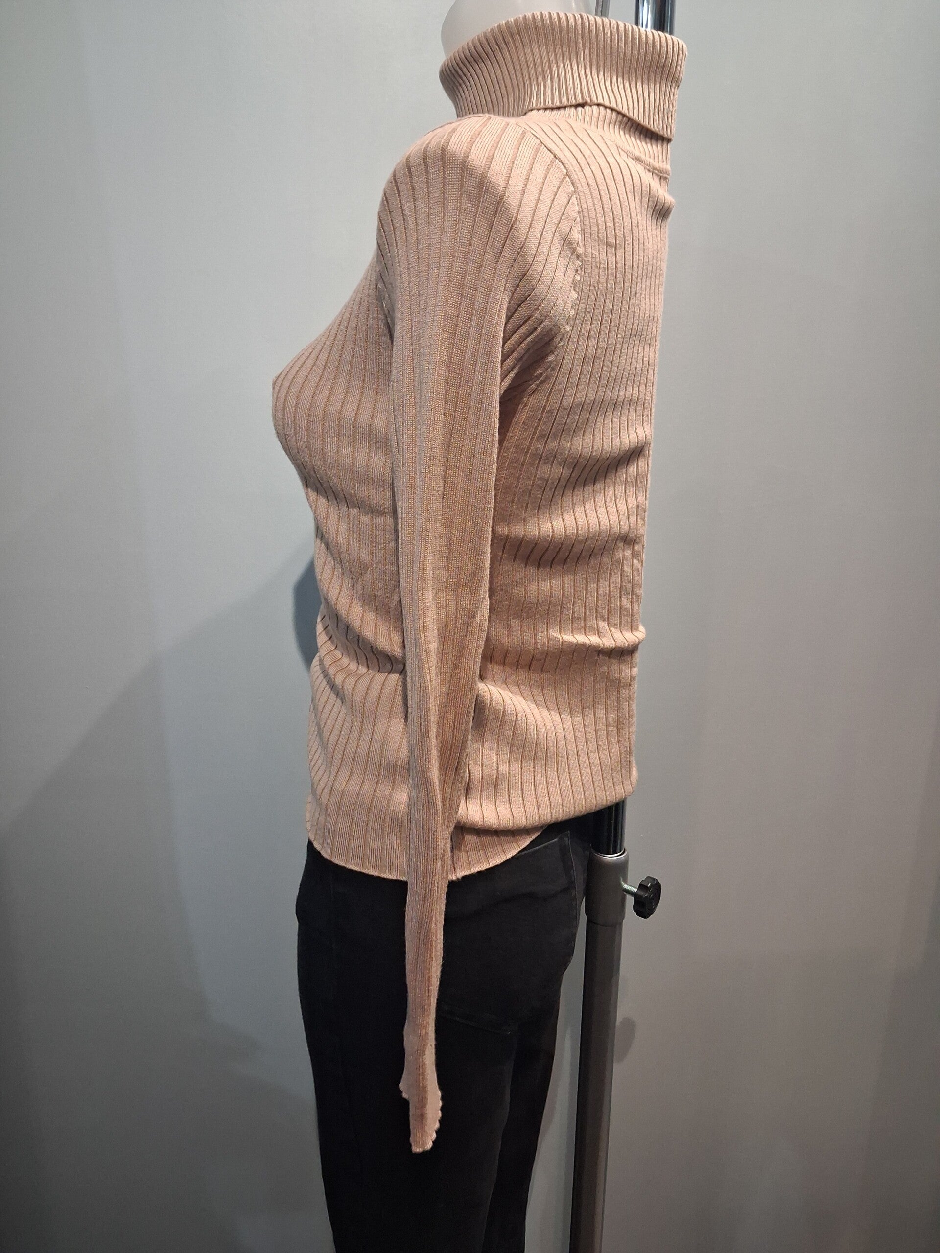 Pull beige col roulé manches longues