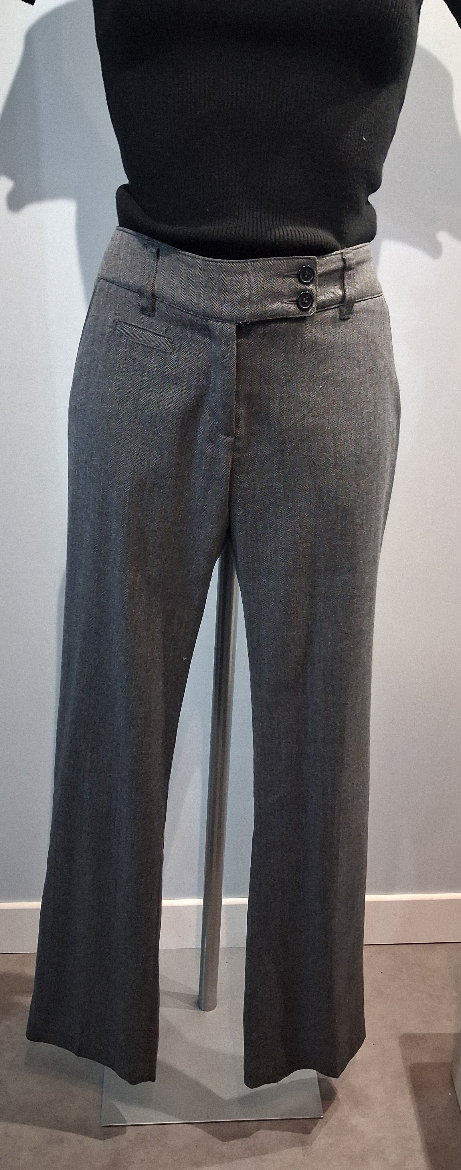 Pantalon droit gris motif chevrons